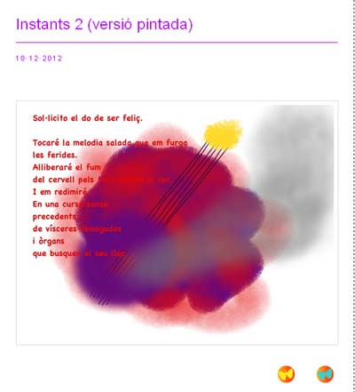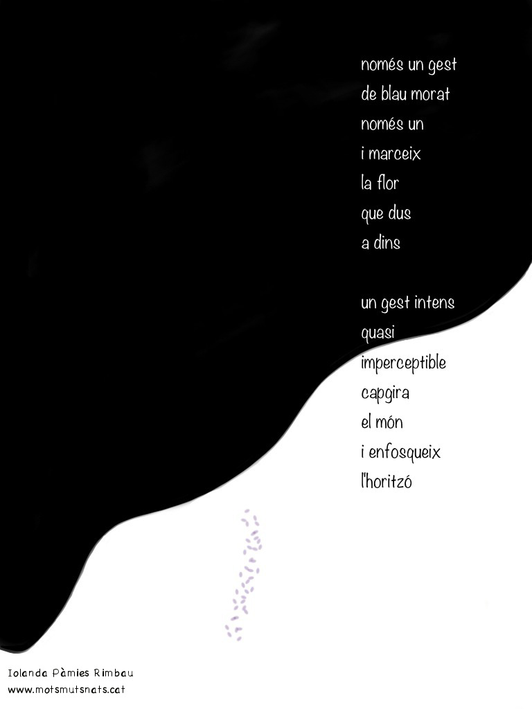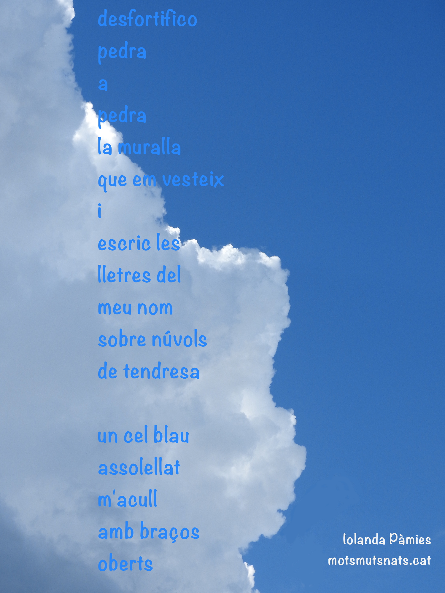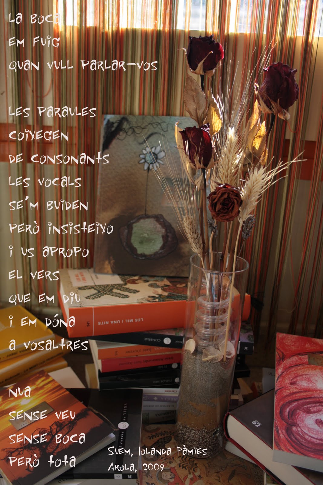 Afganistan (2) Alegria (1) Alemanya nazi (1) Amistat (1) AmorDesamor (26) Bellesa (3) Bruixes i… (4) Colonització (3) Colors (9) Costa Rica (1) Cultura (7) Dansa (1) Dolor (9) Drets culturals (8) Editar (2) Erotisme (1) Escriptors (1) EscriViure (10) Esperança (15) Exposicions (11) Fantasia (1) Felicitat (1) Feminisme (10) Flors (3) Fortalesa (8) Foscor (11) Fràgil (1) Gal·les (1) Gaza (2) Guinea Equatorial (1) Gulag (1) Il·lustrat (7) Instants (11) Interactiu (1) Iran (1) Jardins (1) Lectura (1) Literatura (3) Llengua (3) Llibreries (2) Llibres (15) Lluna (3) Madagascar (1) Marroc (1) Microconte (1) Mongòlia (2) Moçambic (1) Música (14) Nadal (1) Narrativa (6) Nepal (3) Nova Zelanda (2) Oslo (1) Paraula (9) París (2) Passió (6) Poesia (13) Política (2) Premi Blocs Catalunya (1) Realisme màgic (6) Recitals (4) Senegal (1) Soledat (1) Teatre (8) Tendresa (2) Thriller (2) Treballadors de la cultura (3) Tuníssia (1) Viatges (13) Vida (9)