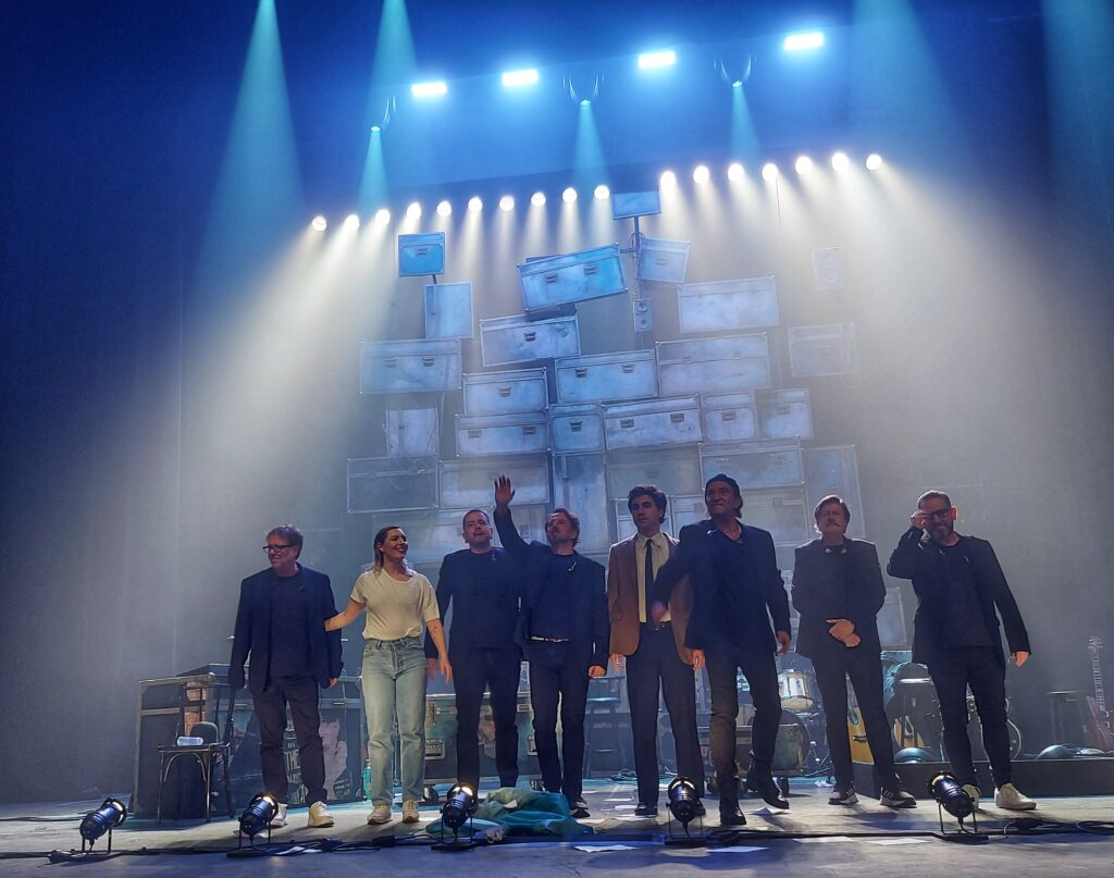 La historia nos emociona, y nos toca directamente al corazón cuando se escenifica la muerte de Enrique (no, no estoy haciendo spoiler, seguid leyendo), te lleva de la mano a través de unos temas míticos que hay quiénes hemos coreado muchísimas veces. Me gustó, mucho, como ensamblan las canciones con el texto, dándoles un papel dramático que las erige en personajes principales de la narración junto a uno de sus creadores, Enrique. Hay momentos en los que estas canciones bajan el volúmen y ocupan un segundo plano para que él prosiga con la historia, y de repente te das cuenta, cuando Álvaro empieza a cantar de nuevo, retomando el tema, que lo que explica esta canción continúa el relato de la obra, o le da otra dimensión, o te ayuda a descubrir cómo debía de sentirse en aquél momento quién es ya un mito de la música española. Y entendemos más y mejor, si cabe, como se gestaron y qué significaron para él estas canciones. Me gustaron también los nuevos matices que les dieron a algunos temas, y como brilló Álvaro a nivel vocal en ciertos momentos.